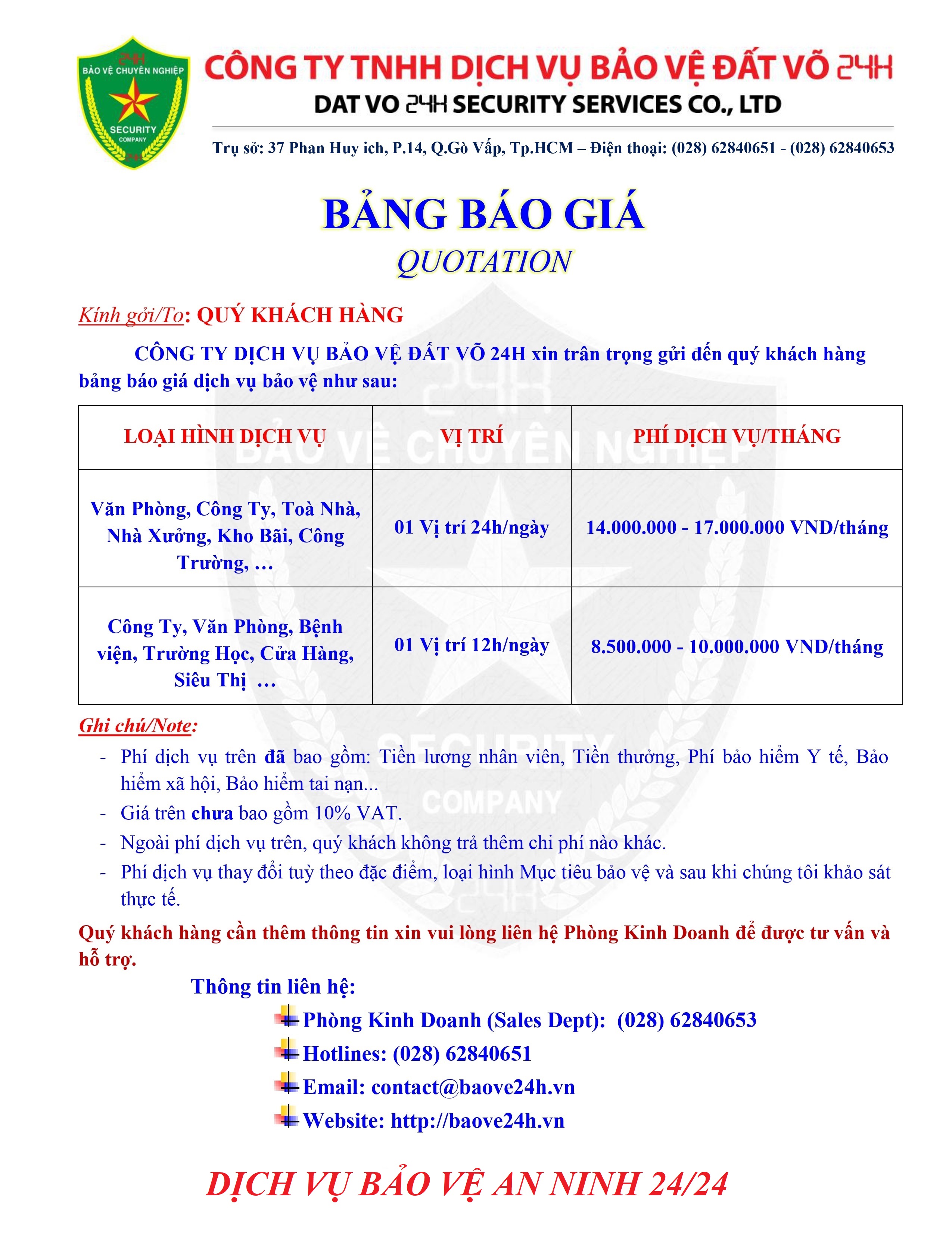 CÔNG TY TNHH DỊCH VỤ BẢO VỆ ĐẤT VÕ 24H