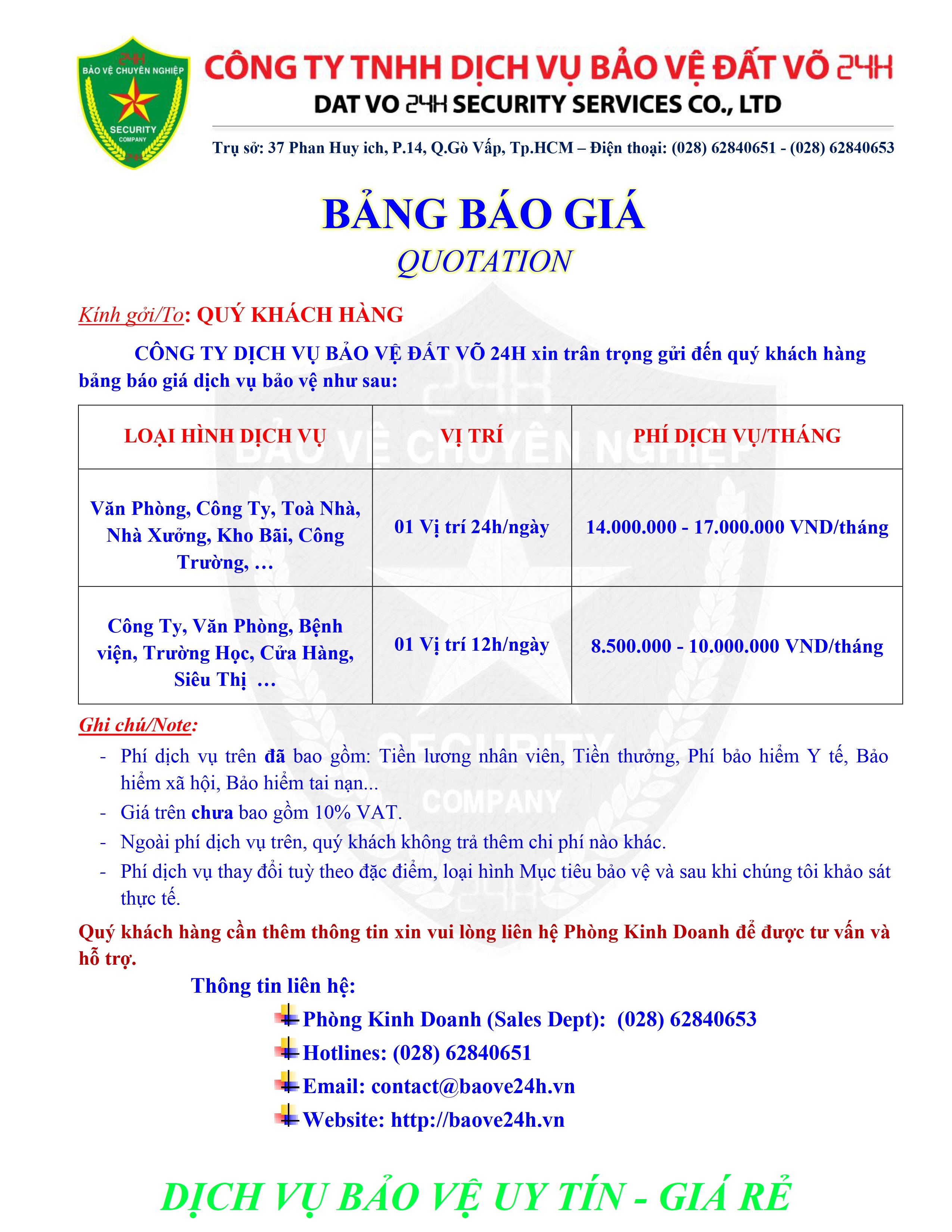 CÔNG TY TNHH DỊCH VỤ BẢO VỆ ĐẤT VÕ 24H